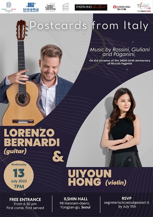 이탈리아 트렌토에서 출생한 기타리스트 로렌조 베르나르디는 2015년 본포르티 콘서바토리를 졸업한 이후 카네파 콘서바토리에서 엠마누엘레 부오노의 가르침을 받았다. 그후 스페인의 마누엘 카스틸로 콘서바토리에서 수여하는 장학금으로 세계적으로 유명한 기타리스트 프란시스코 베르니에르를 사사했다. 이후로도 꾸준히 줄리아노 탐팔리니, 안드레아 디에치, 프레데릭 지간테, 카를로 마르치오네 등 많은 기타리스트의 마스터 클래스에 참가해 배움의 고삐를 늦추지 않았다.