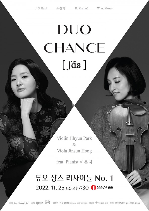 바이올린과 비올라로 구성된 현악 듀오, Duo Chance [ʃɑ̃s]는 바이올리니스트 박지현과 비올리스트 홍진선이 화음챔버오케스트라에서 함께한 인연으로 결성되었습니다.